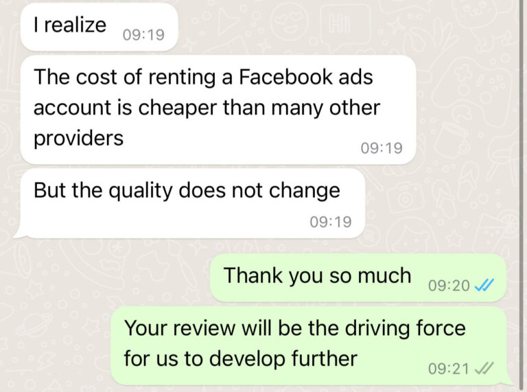 In case the ad account is suspended or disabled not due to policy violation from the customer side, we will send an appeal against the decision. If the appeal is not approved, we will issue a new ad account and transfer all money from the old ad account to the new one. The customer won’t incur additional costs.